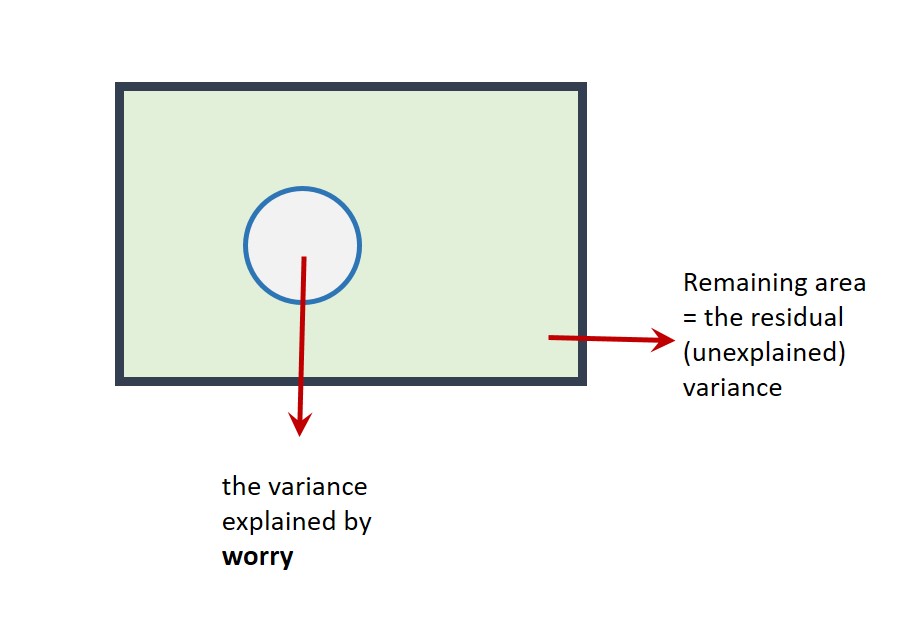The F-statistic compares the explained variance with the unexplained variance. The explained variance is represented by the outline of the two circles in the Venn diagram above. The unexplained variance is the remaining blue area of the rectangle.